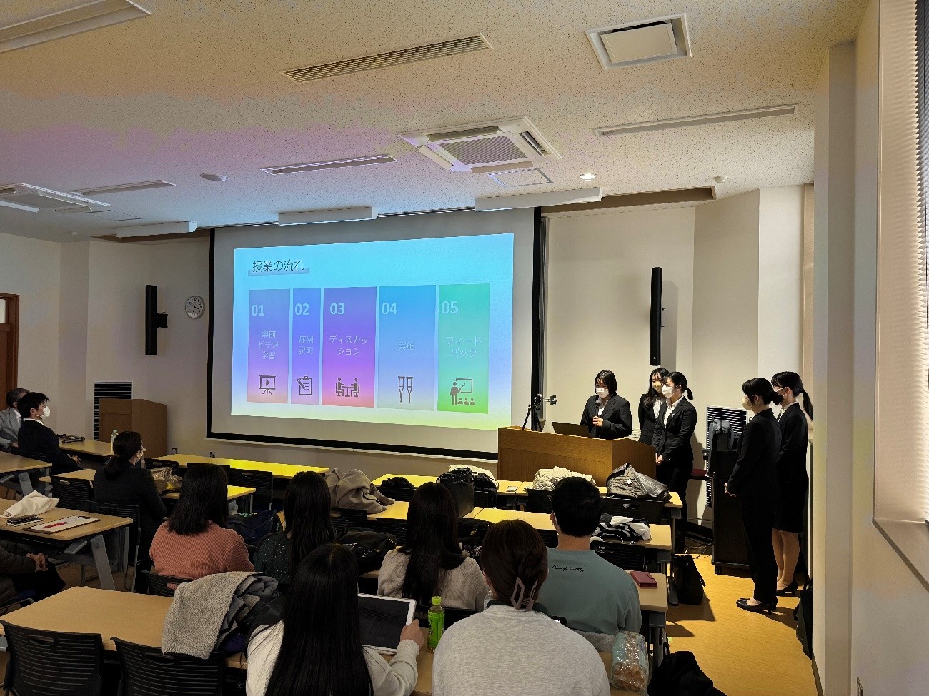 令和6年度短期海外研修報告会を開催しました。看護学専攻学生がスラナリー工科大学(タイ)、ビブス応用科学大学(ベルギー)へ、理学療法学専攻学生がグリフィス大学(オーストラリア)へ、作業療法学専攻学生がチェンマイ大学(タイ)へそれぞれ短期留学を行いました。報告会では、それぞれの学んだことや苦労したこと、現地での生活の様子を中心に報告していただきました。報告会の最後には、次年度より派遣先となるFH Campus Wien応用科学大学(オーストリア)、ウィラメディカバリ健康科学大学(インドネシア・バリ島)について国際交流センター委員より説明がありました。